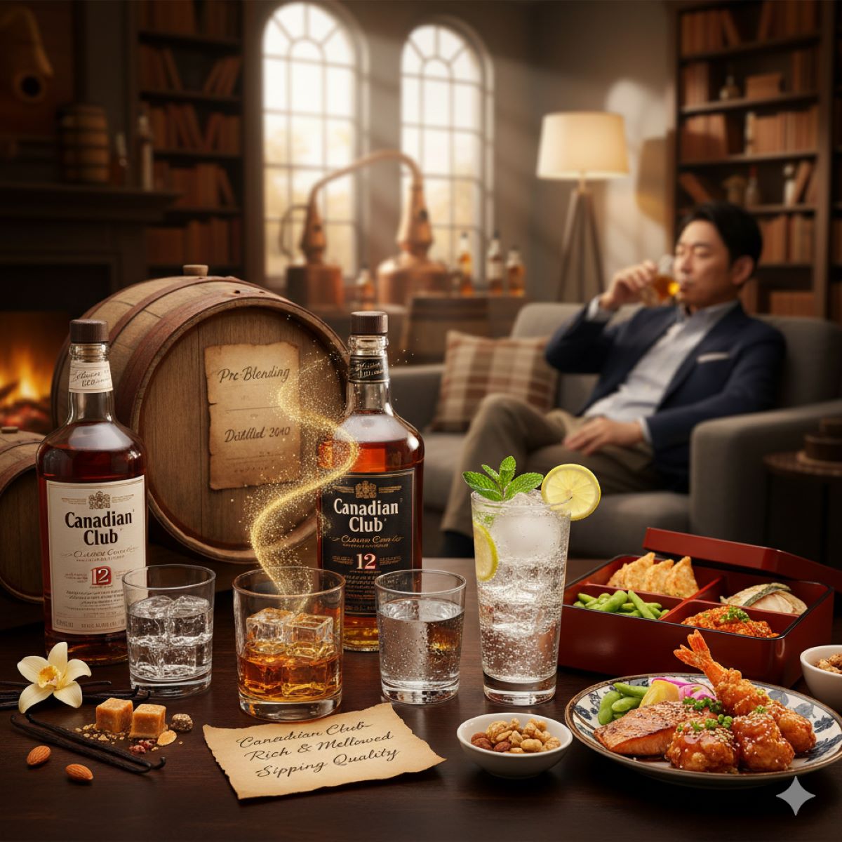 カナディアンクラブ(C.C.)を一口飲んだとき、多くの人がまず驚くのは、その圧倒的な「軽やかさ」と、鼻に抜ける「上品で甘やかな芳香」かなと思います。